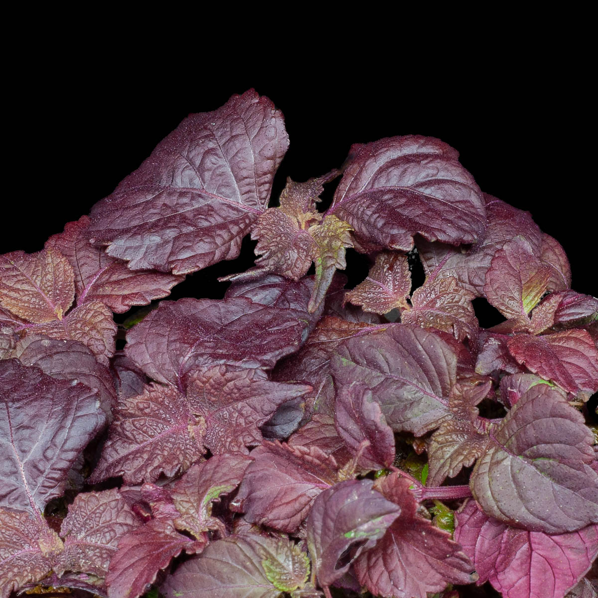 Il shiso rosso, noto scientificamente come Perilla frutescens var. crispa, è una pianta erbacea annuale originaria delle regioni montuose della Cina e dell’India. Appartenente alla famiglia delle Lamiaceae, è strettamente correlata a menta e basilico. Le sue foglie cuoriformi e dentellate presentano una vibrante tonalità rosso-violacea.